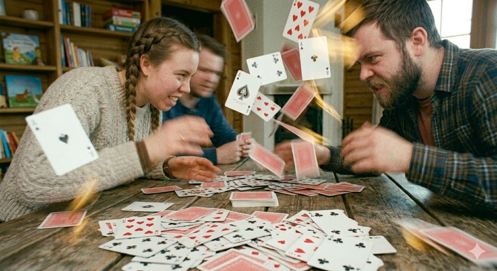 Pelin samanaikaisuus tarkoittaa, että jos molemmilla pelaajilla on sopiva kortti samaan pinoon, nopeampi ehtii ensin. Tämä johtaa usein tilanteisiin, joissa kädet risteävät ja kortit lentävät. On tärkeää pysyä tarkkana, sillä väärän kortin pelaaminen keskeyttää pelin ja voi johtaa rangaistukseen tai vähintäänkin rytmin katoamiseen. Strategisesti on viisasta seurata molempia keskipinoja samanaikaisesti, jotta voit hyödyntää tilaisuudet heti niiden avautuessa.